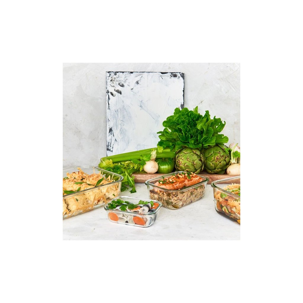 Dóza na potraviny skleněná obdélníková 1,6l