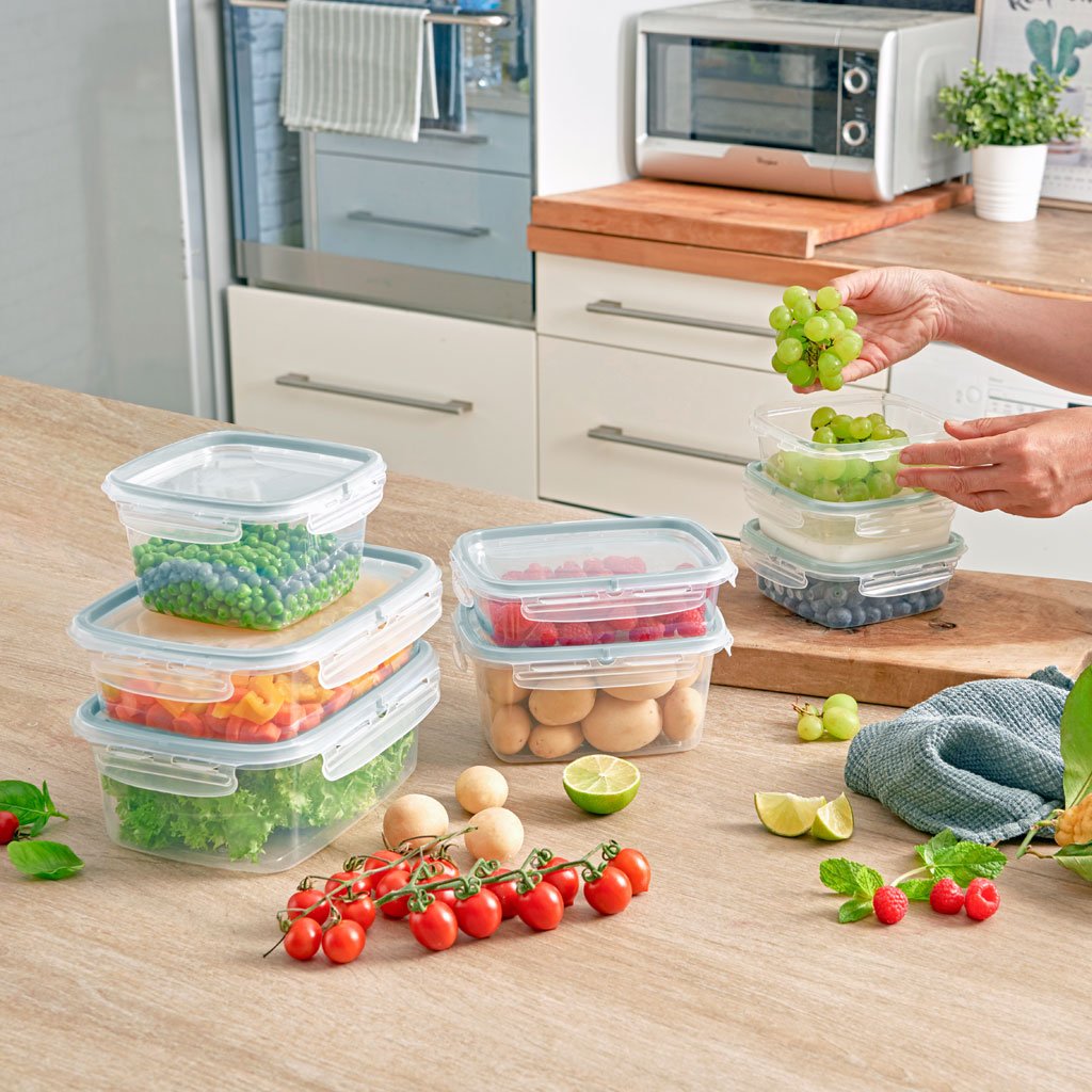 Krabičky se dají stohovat na sebe, když jsou plné. Prázdné se snadno skládají do sebe pro úsporu místa.
