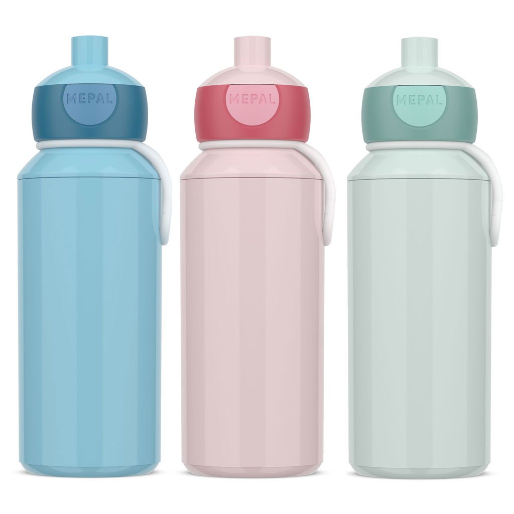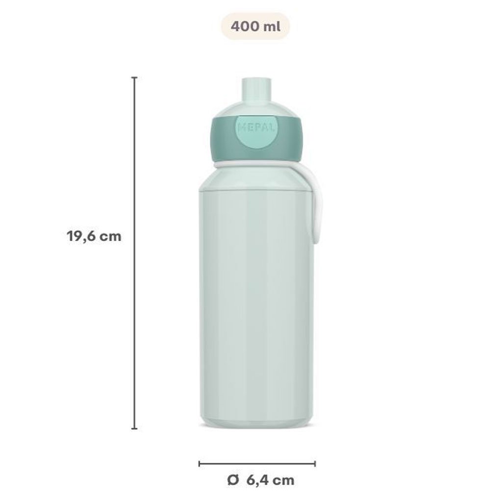 Pevná láhev s objemem 0,4l je vyrobena z odolného materiálu ABS* bez BPA a ftalátů.