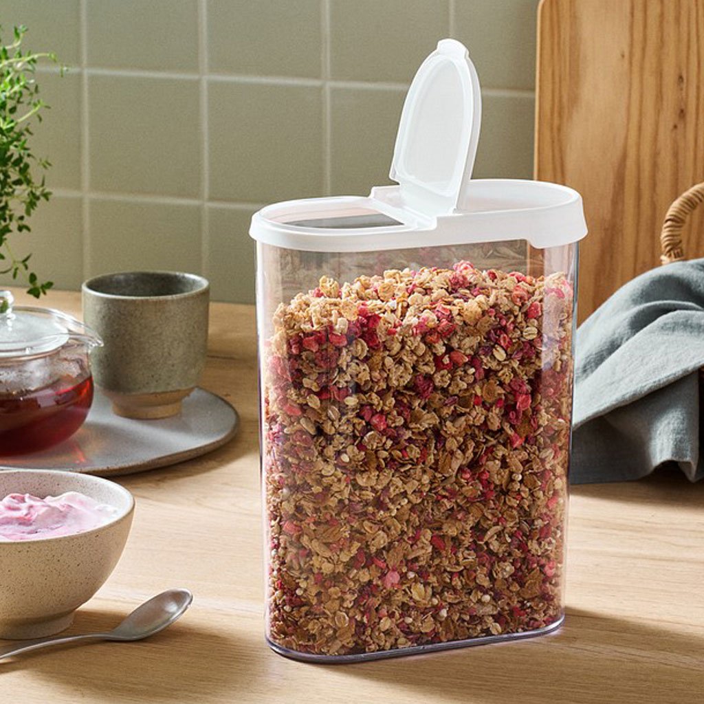 Nádoba byla vyvinuta na základě požadavku spotřebitelů na udržení sypkosti a čerstvosti uložených potravin a možnost jejich přímého a přesného sypání. Velikost 2,4l je vhodná zejména na mouku, těstoviny nebo müsli