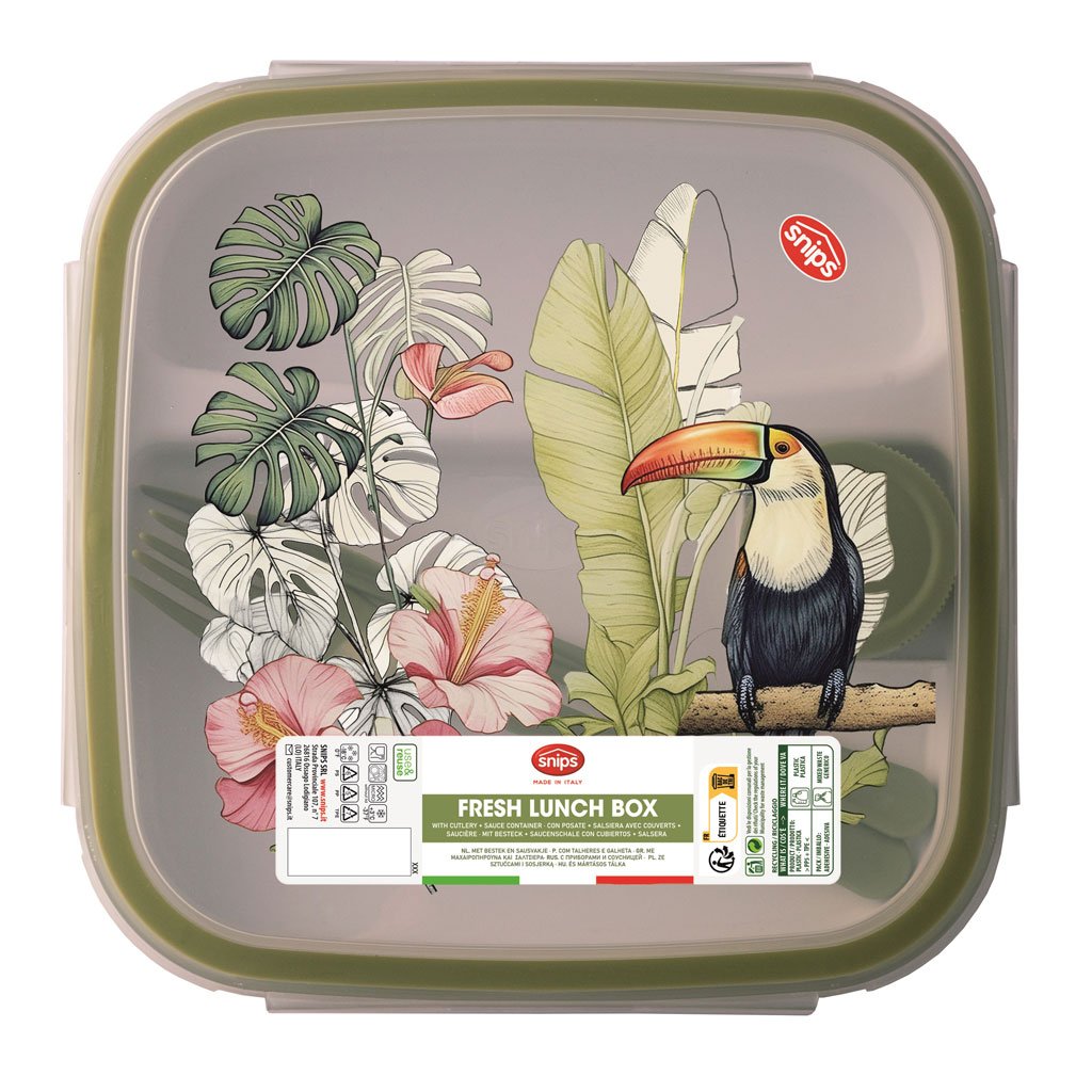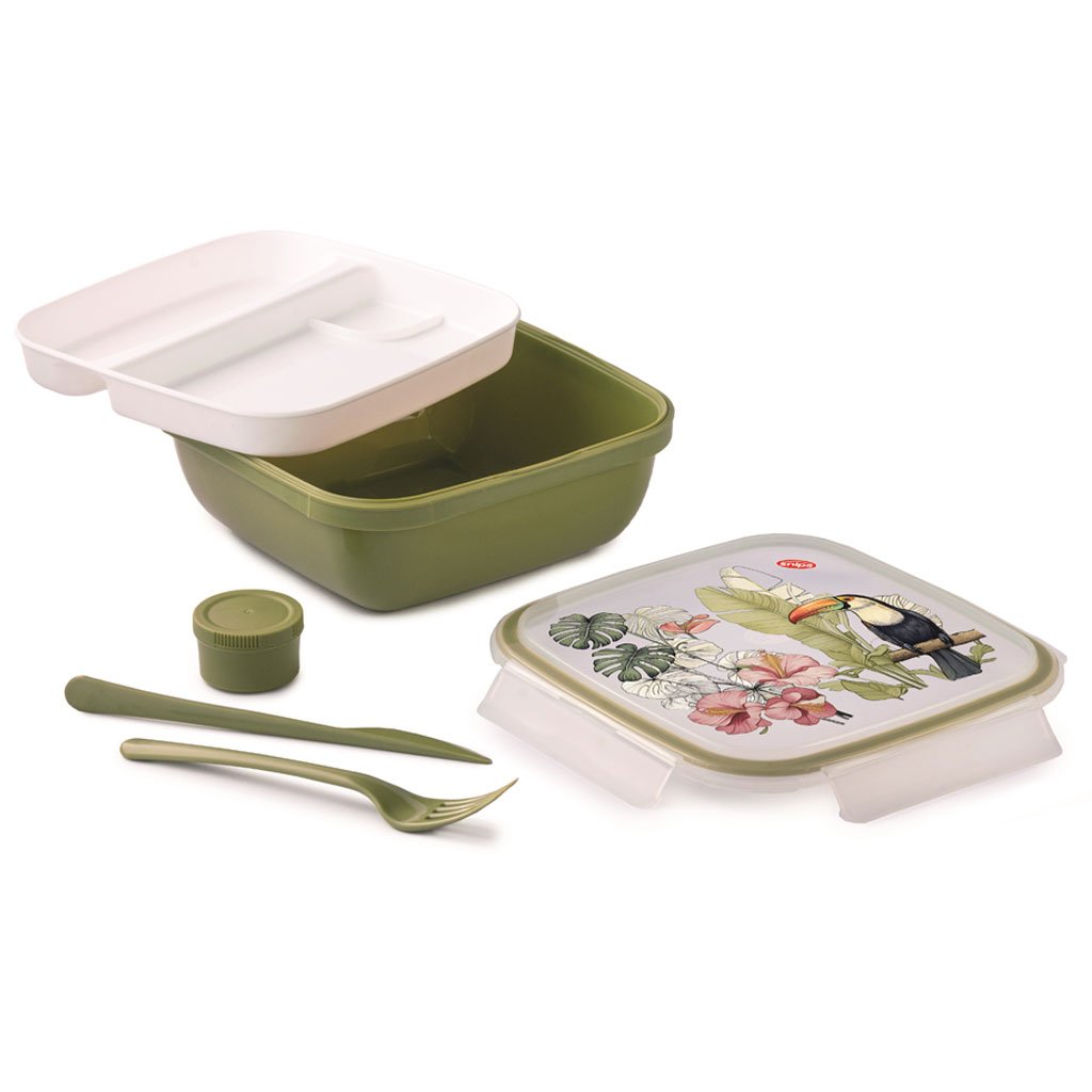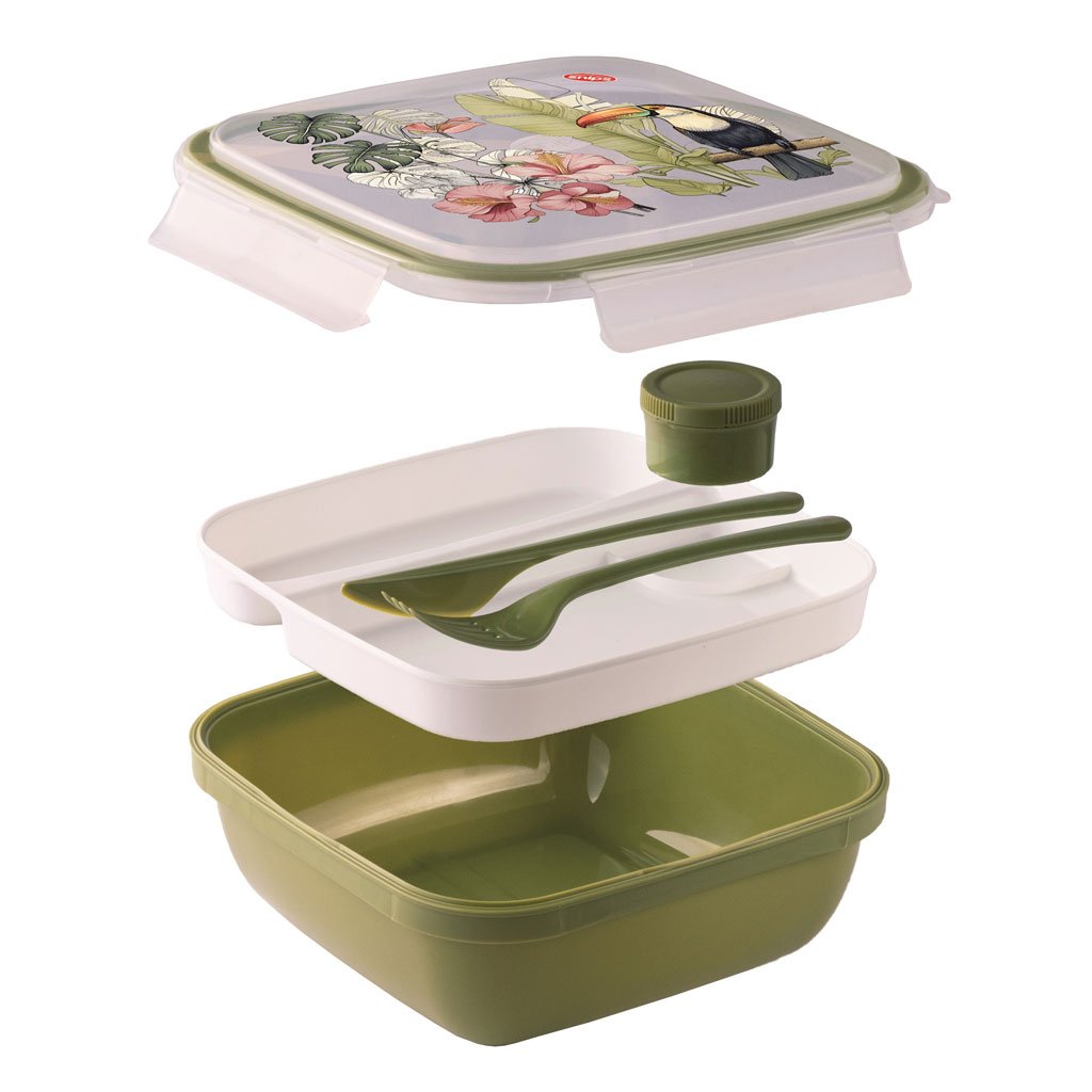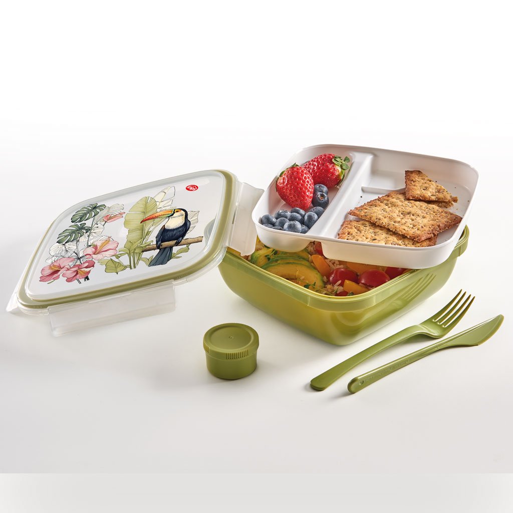 Obědový box Tukan čtvercový s příborem 1,5l
