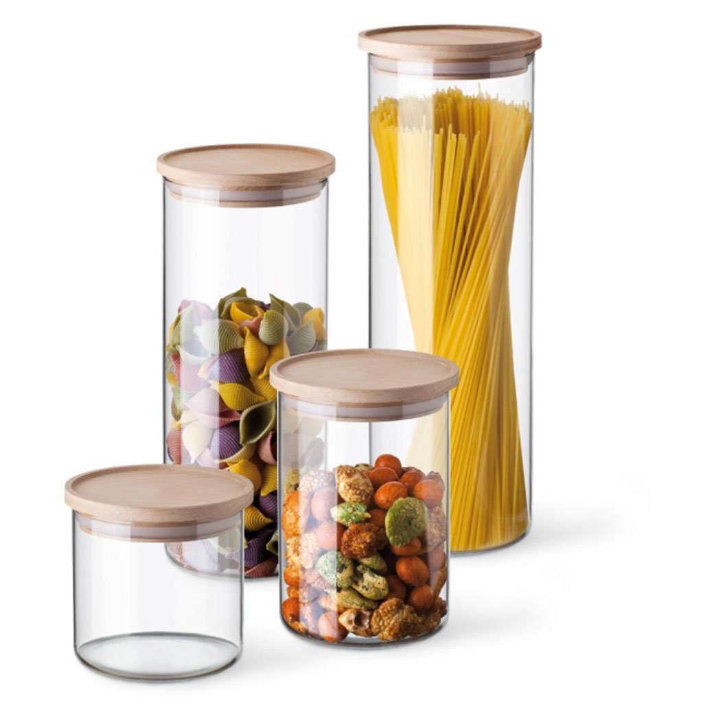Simax Skleněný zásobník s dřevěným víkem 1,4l