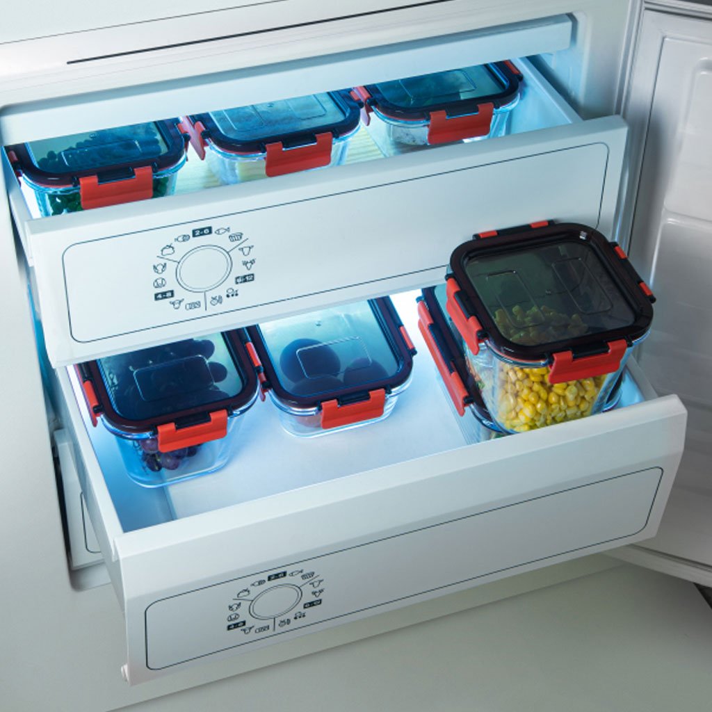 - uložení potravin v lednici a mrazáku – sklo snadno snáší teploty až -40°C