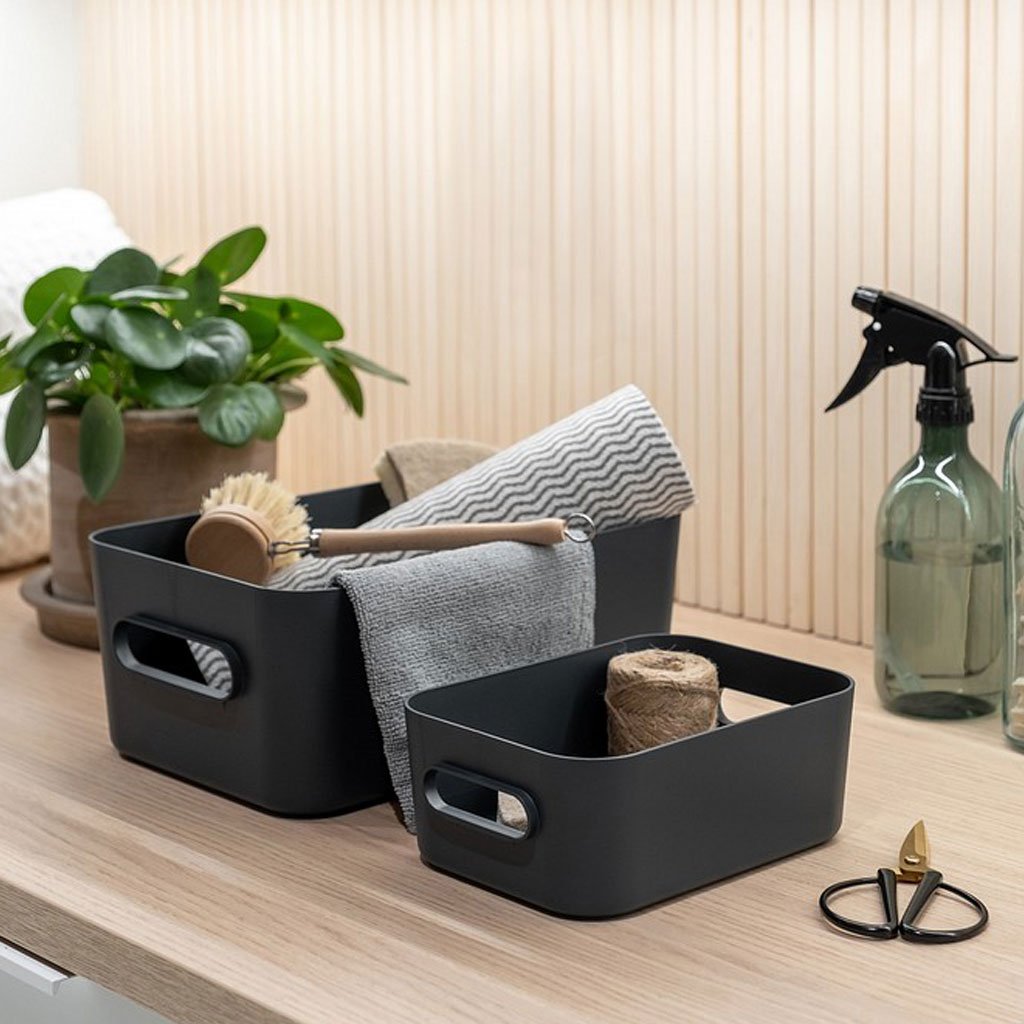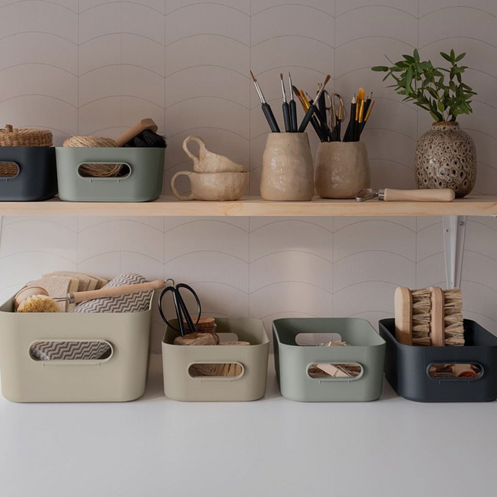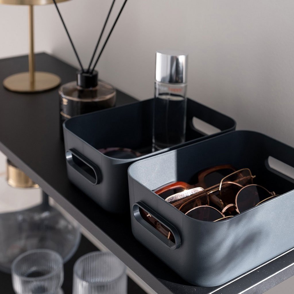 Košíky – plastové košíky pro domácnost ve 3 velikostech a dvou barvách jsou vhodné pro každodenní skladování čehokoli, co potřebujete mít stále po ruce. Krabice na ponožky, organizéry na spodní prádlo, úložné boxy na domácí potřeby – to vše mohou nahradit nebo vhodně doplnit tyto univerzální koše.
