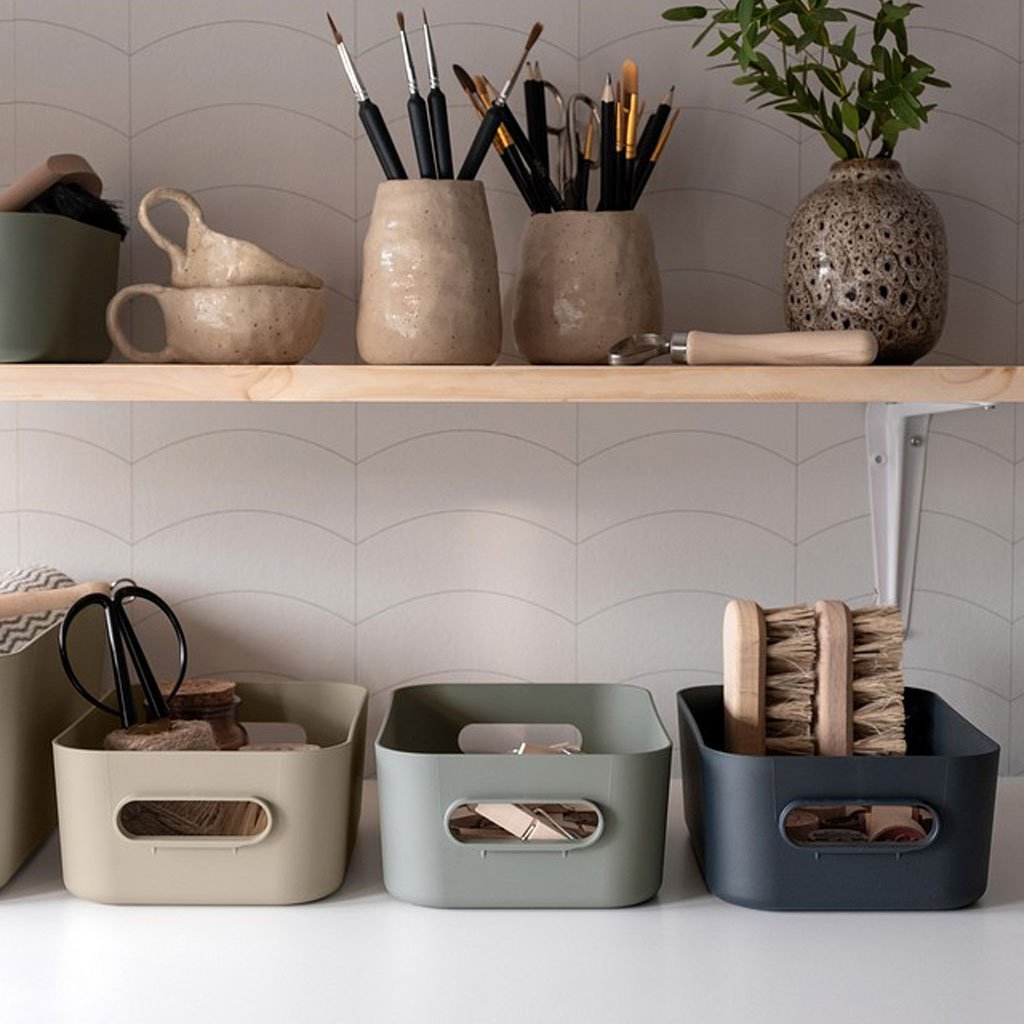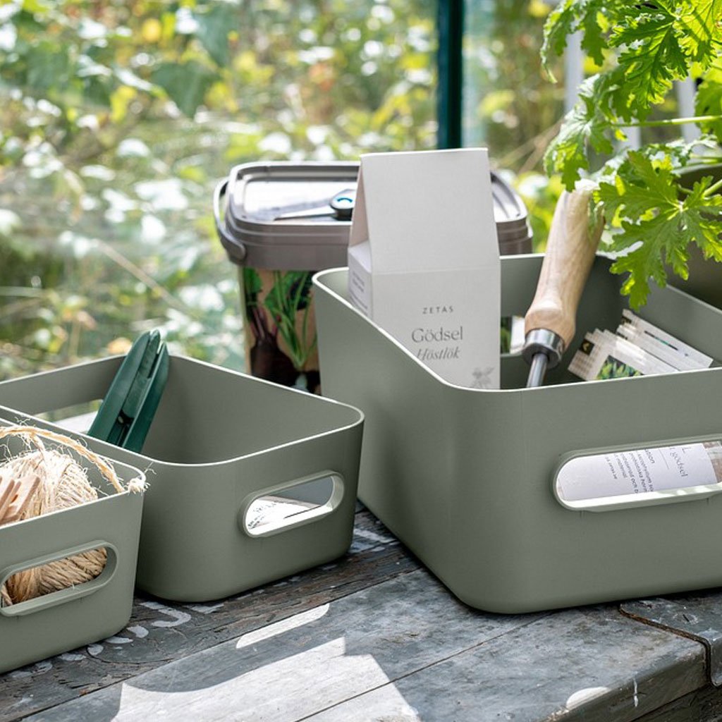 Compact – čistý severský design a lesklý pevný plast jsou hlavní výhody této řady určené pro ukládání v kuchyni, kanceláři nebo koupelně. Jednotlivé velikosti jsou modulární a při použití víka stohovatelné.